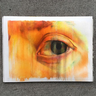 I used watercolor pencils on cold pressed 100% cotton 140lb. Arches paper. I then used a wide bristled brush to add water. I had little to no control over the outcome once the water was added. Let the spontaneity begin!